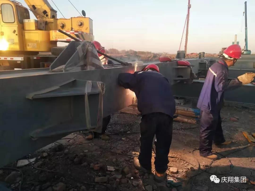 (工人們焊接、組裝鋼架)